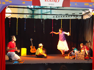 O grupo participou hoje da Semana Literária do SESC Apucarana. Foram duas apresentações de um "Fio puxa outro". Elas ocorreram numa escola municipal em Pirapó e outra no próprio espaço da instituição. As crianças participaram bastante. As adivinhas estavam na ponta da língua da criançada. Duas cirandas gigantes foram feitas na escola! Agradecemos a todos!
